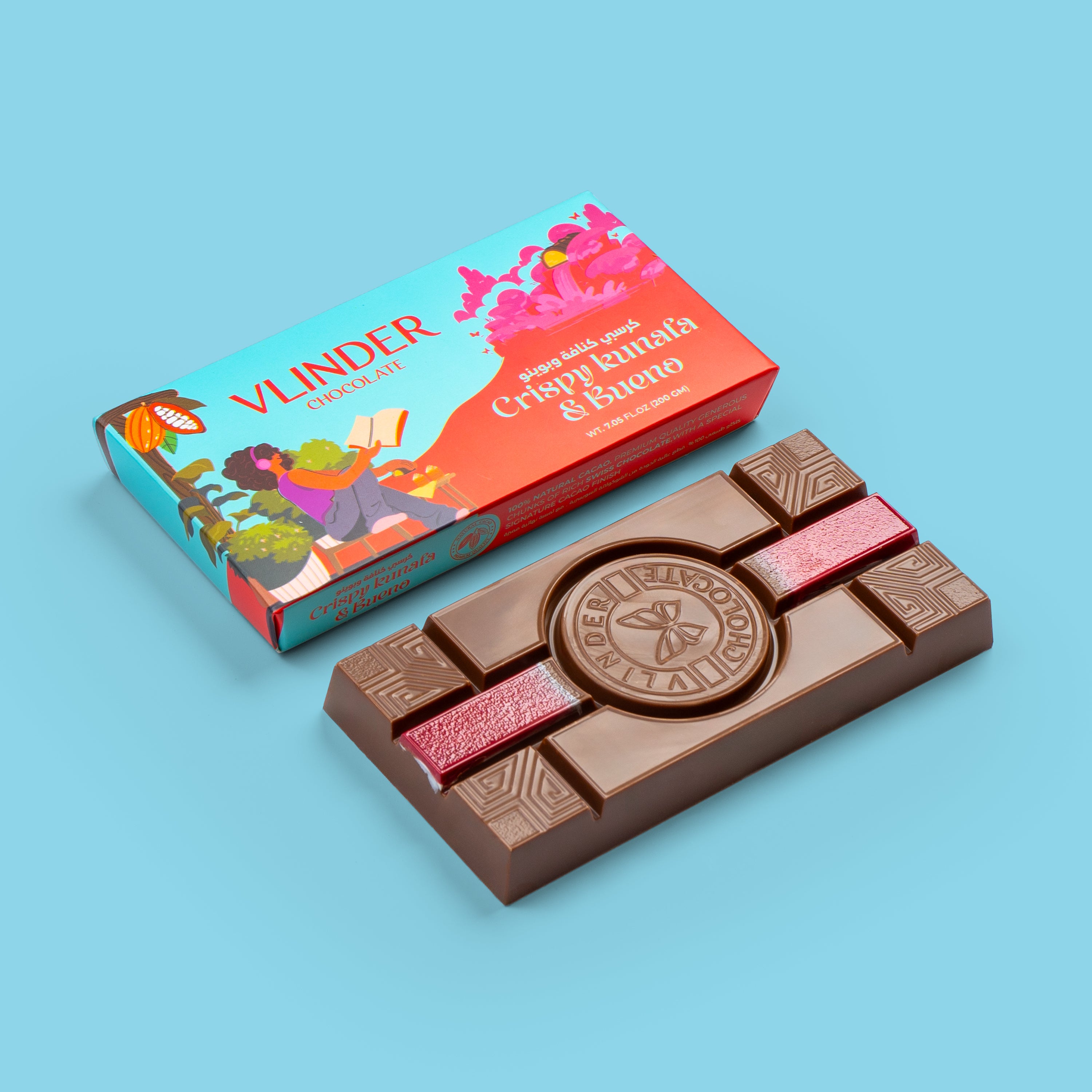 Swiss chocolate bar filled with Kinder Bueno cream and crunchy Arabic kunafa
