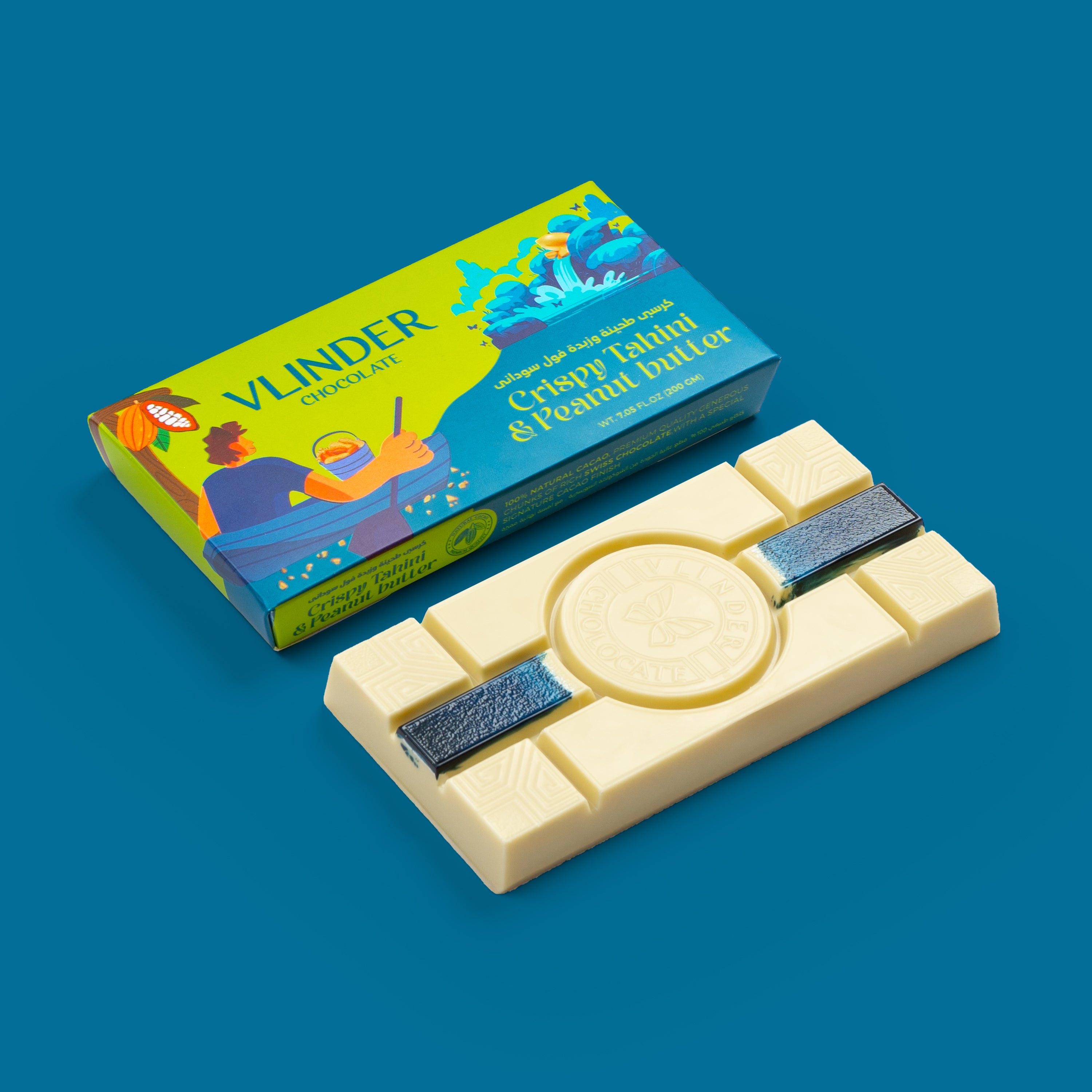 Swiss chocolate bar filled with tahini and smooth peanut butter